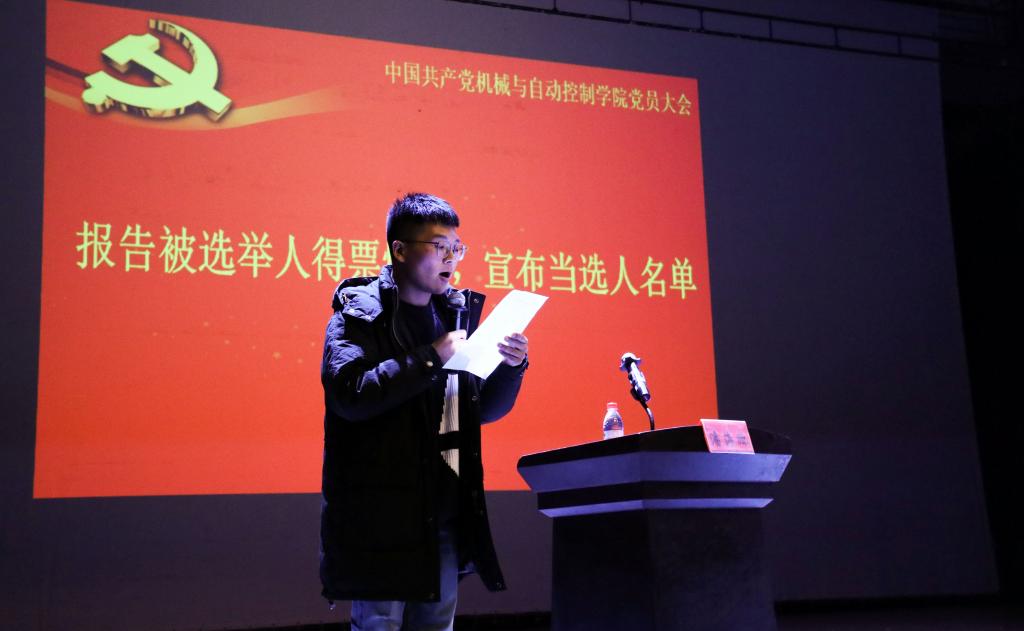 12月12日下午,机控学院在校大剧院召开党员大会,选举出席学校第三次党代会代表。学院党委书记潘海鹏,院长兼副书记陈本永、副书记苏丽辉,副院长、党委委员俞高红、胡明、鲁玉军,党委委员吴震宇以及各师生党员参加会议。会议由潘海鹏主持。