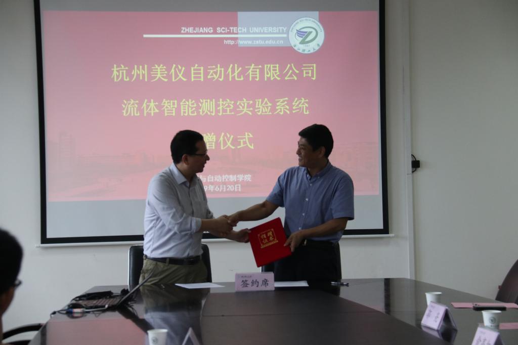 6月20日下午,机控学院在15号楼322会议室举办“流体控制实验系统”捐赠仪式。杭州美仪自动化有限公司向机控学院捐赠流体控制实验系统。学院院长陈本永,学院党委书记潘海鹏、副书记苏丽辉等党政领导,杭州美仪自动化有限公司董事长丁程以及其员工代表,机控学院师生代表等参加会议。