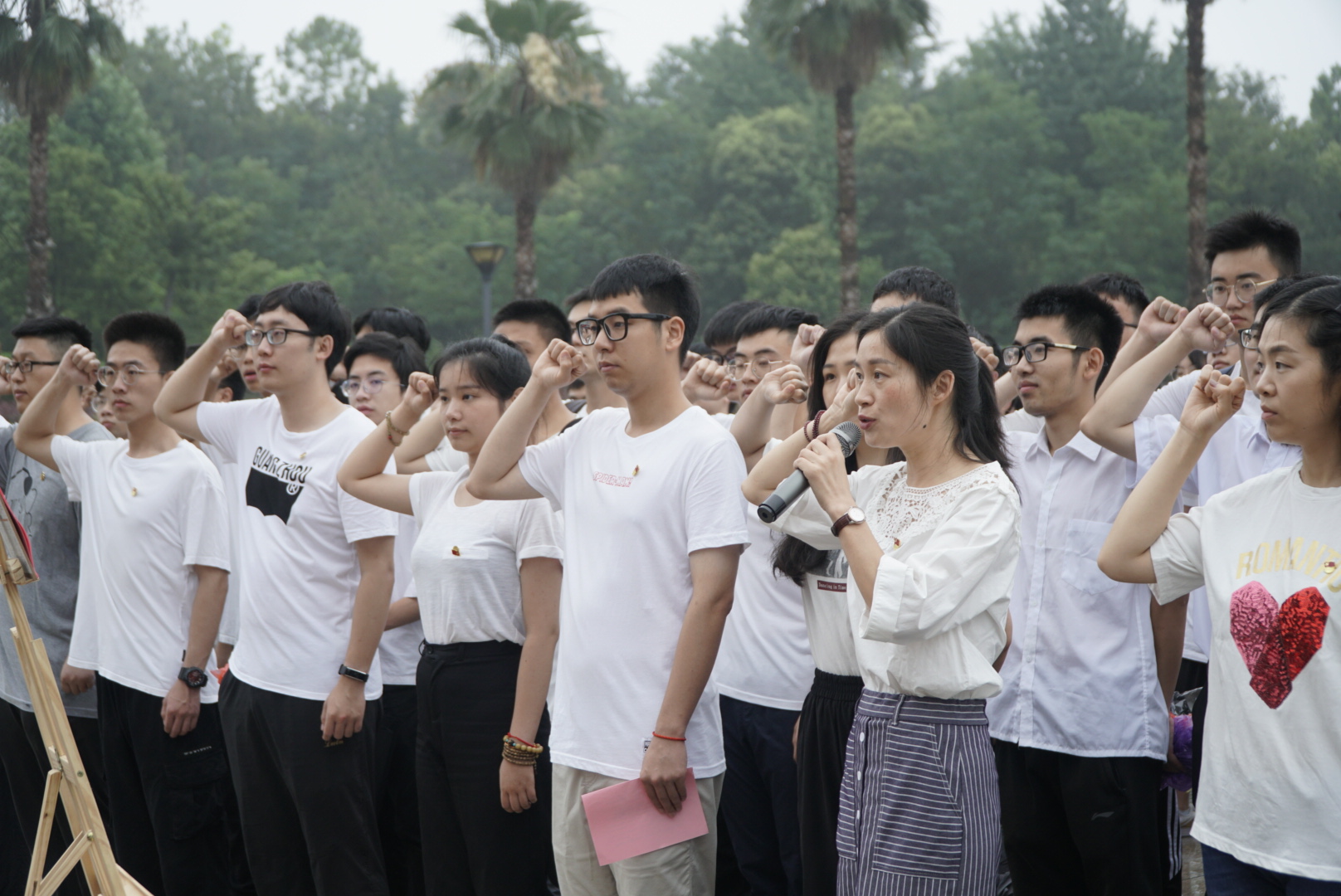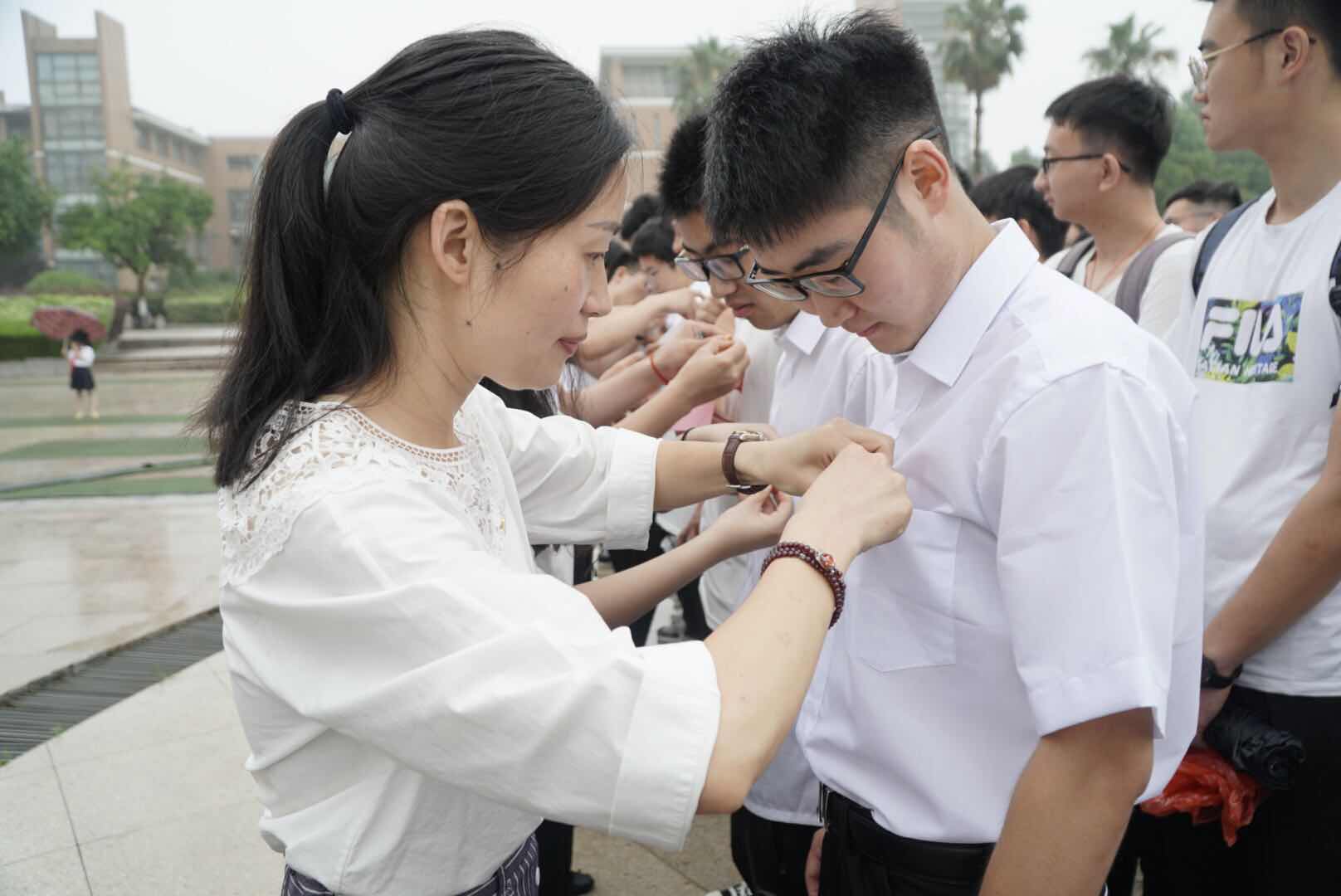 一曲颂歌过后,苏丽辉为实践团授旗,并分别对学生党员和实践团提出希望与要求,随后她宣布“三省十县红文化•青春筑梦新征程”暑期社会实践活动正式启动。滂沱大雨挡不住同学们奋斗的脚步。仪式在大雨中圆满结束,实践小分队奔赴各地开展丰富多彩的暑期社会实践活动。