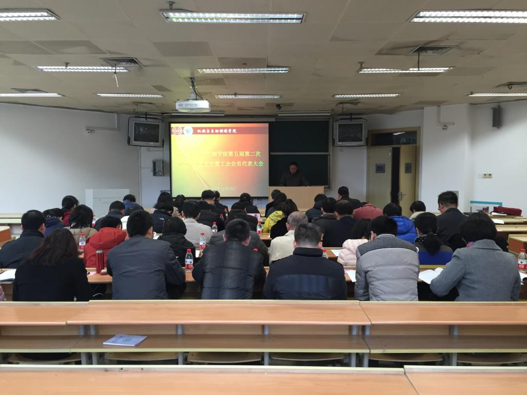 第五届第二次教职工代表大会暨工会会员代表大会胜利召开。学院联系校领导陈建勇副校长应邀出席了大会,50位正式代表、特邀代表和列席代表参加了大会。大会由学院党委书记潘海鹏主持。