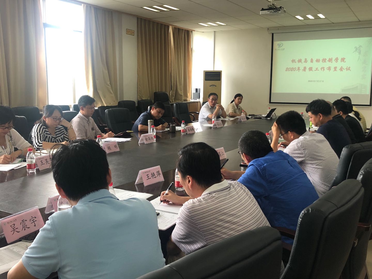 7月17日下午,机控学院在15-322会议室召开2020年暑期工作布置会,总结上半年工作成绩,对暑假前后相关工作进行安排部署。学院全体领导,各系、中心、办公室主任参加会议。会议由院长陈本永主持。