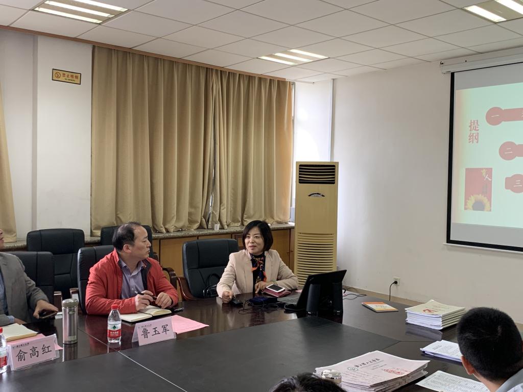在322会议室召开“三全育人”专题推进会、“课程思政”培训交流会暨党委理论学习中心组学习研讨会。会议特别邀请马克思主义学院副院长肖香龙教授做“课程思政”专题报告。学院党委书记潘海鹏、院长陈本永,党委副书记王吴芳、副院长俞高红、鲁玉军,党委委员吴震宇及各系(中心)、办公室负责人、师生党支部书记参加会议。会议由王吴芳主持。