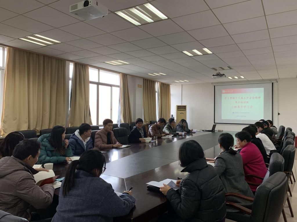 小组在15-322会议室召开集中自学会,学院党政领导、“双高双强”型年轻干部、师生党支部书记、组织员等参与学习。