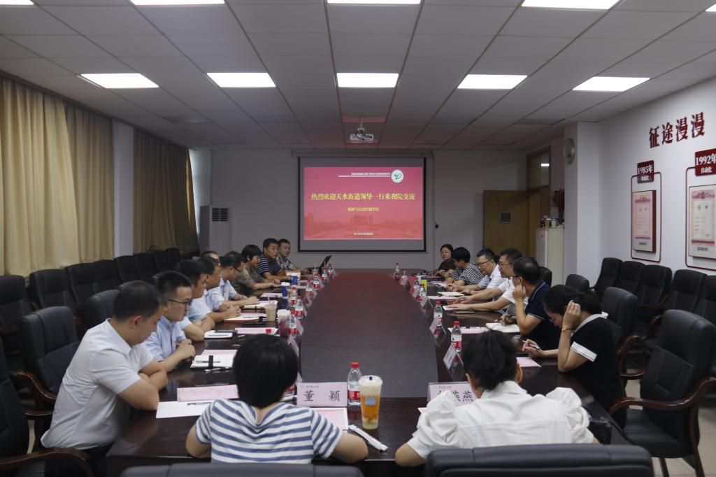 苏志俭向天水街道一行表示热烈欢迎,并从学院发展历史、学科建设、人才培养、科学研究等方面展开了详细介绍。卢名辉从“小而精,小而美,小而强”三个方面详细介绍天水街道的基本情况并重点介绍武林商圈党建联盟及团建工作情况。接着,双方就今后党建团建合作事宜展开深入讨论,将高校的科研服务融入街道建设的民生服务改造工程,街道为学院学生提供更加广阔的社会实践和志愿服务平台,双方之间加强党建团建工作互相借鉴学习,真正实现党建团建与中心工作的融合。
