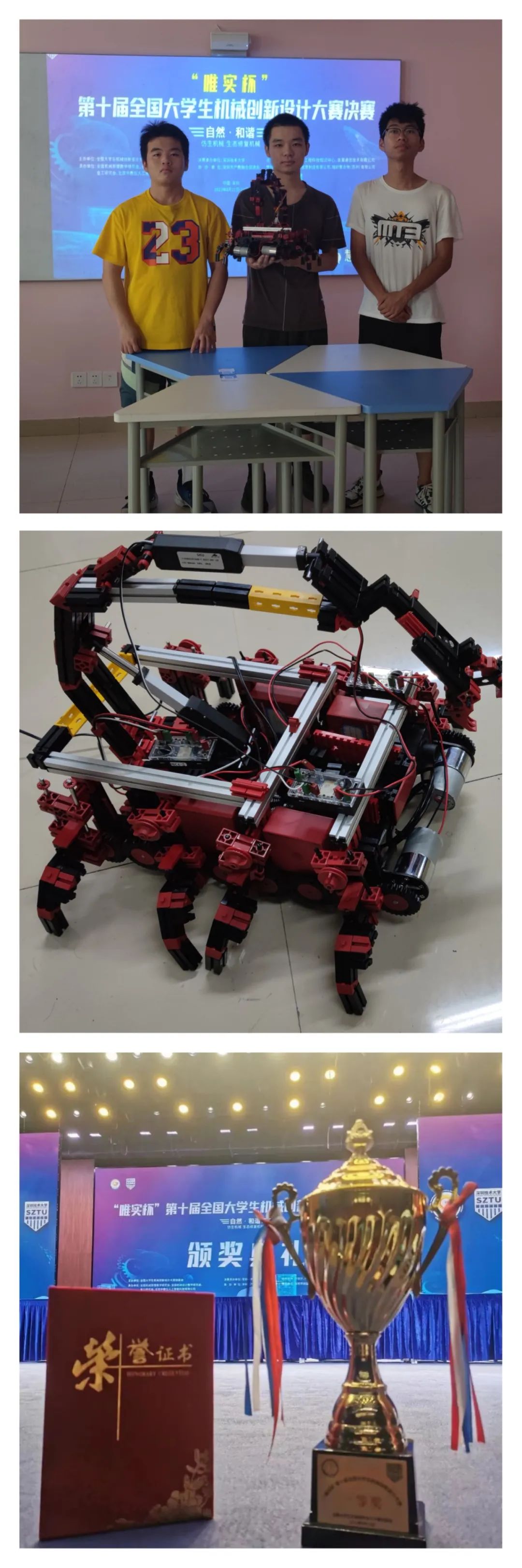参赛作品《仿生蝎子野外探测机械 》获得全国一等奖。