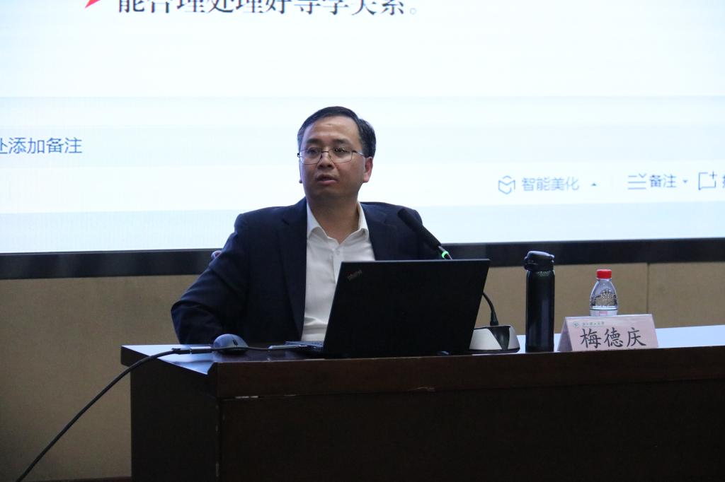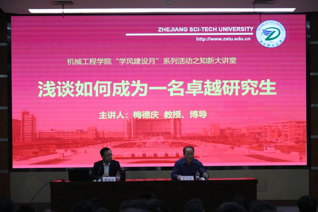 为进一步提高学院研究生生涯规划的意识与能力,营造奋进向上的育人环境,提高学院人才培养质量,11月13日下午,机械工程学院学风建设月之“知新大讲堂”在行政楼二楼报告厅举办。浙江大学海洋学院常务副院长、党委副书记、博士生导师梅德庆教授应邀担任本次主讲人,为现场200余名师生带来了一场题为《勇于创新 精益求精 追求卓越——浅谈如何成为一名卓越研究生》的专题报告。学院副院长鲁玉军、党委副书记陆秋萍参加。