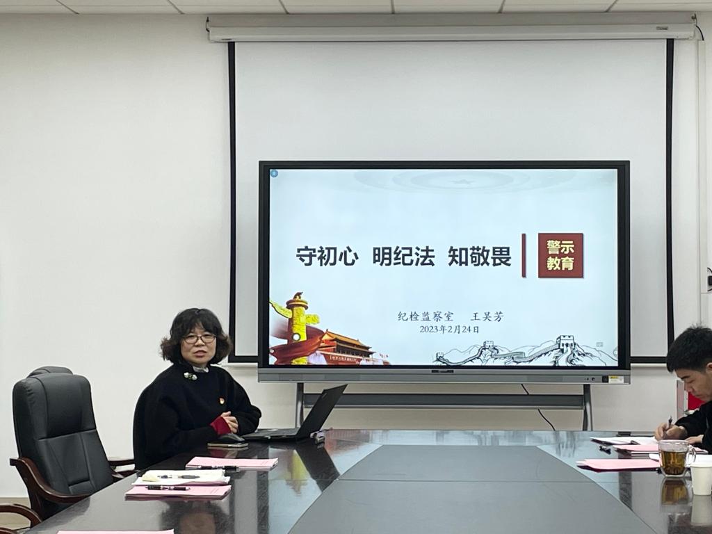 会上,结合年轻干部违纪违法典型案例警示教育工作要求,学院邀请了学校纪检监察室副主任王吴芳作主题为《守初心 明纪法 知敬畏》的专题报告。