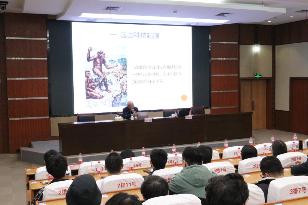 黎明老师从人类生命起源讲起,详细了介绍科学技术的萌芽时期——旧石器时代和新石器时代,并向同学们展示了青铜器、石器工具等多种人类早期的科技发明作品,着重介绍沈括等对中国古代科技进步做出巨大贡献的代表人物。随后,他又通过对四次工业革命历程的梳理,详细讲述了蒸汽机、汽车、飞机、青霉素、计算机等近现代科技发明,总结归纳了技术革命带给我们的启示。接着,他从科学理论的准备、技术完善的过程、技术的进步在加速、弯道超车与后发优势等几个方面展开了论述。他强调,创新是推动发展的重要力量,要让创新贯穿党和国家一切工作。报告的最后,他带大家一起展望了科技与人类发展的未来,提出外星探索、延长寿命、数字化永生等科技最前沿的创造性假想,启发同学们的创新思维和探索精神,培养科学的世界观。