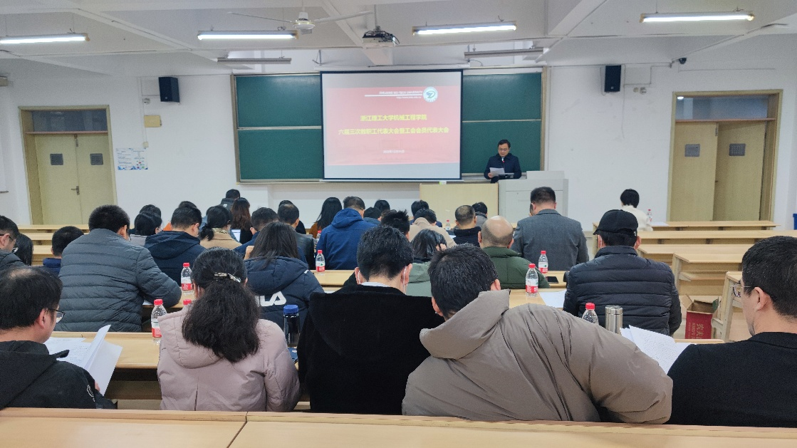 机械工程学院在3号教学楼北101教室召开六届三次教职工代表大会暨工会会员代表大会。学院党政领导班子成员、学院分工会和教职工代表40余人参加会议。会议由学院党委副书记陆秋萍主持。