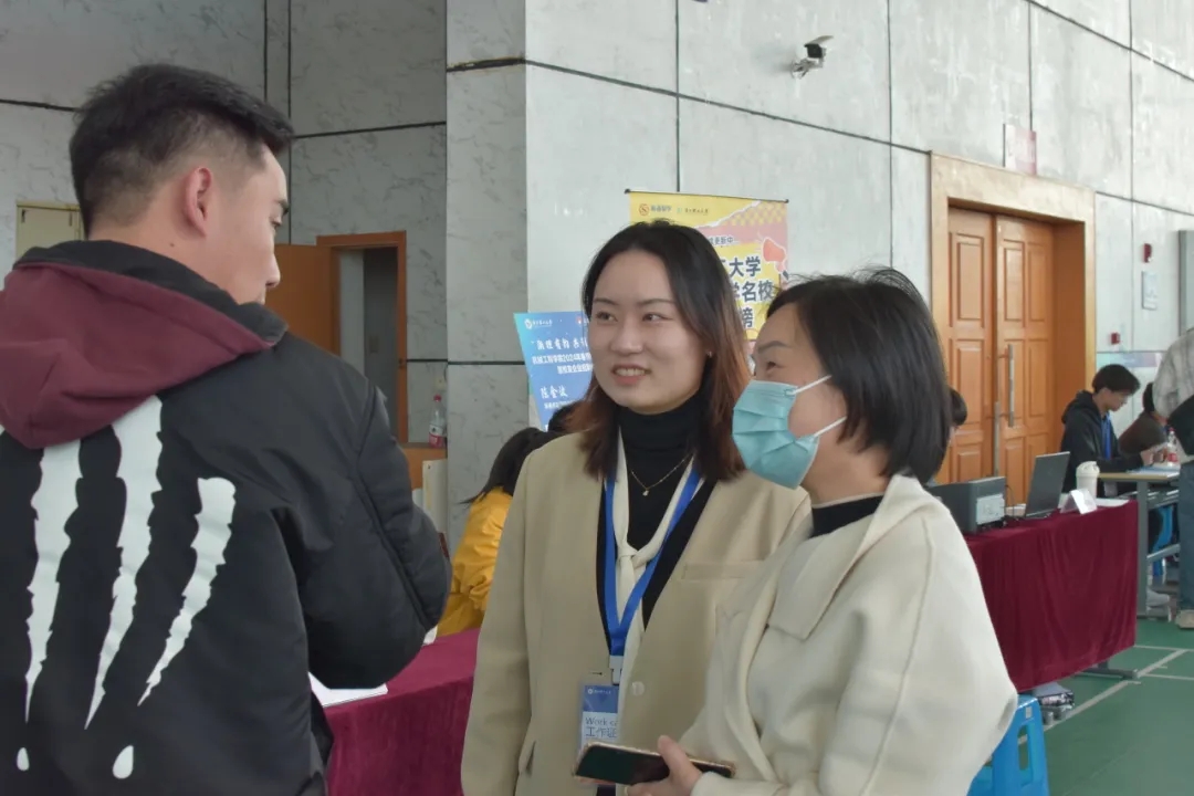学院高度重视此次招聘会,党委副书记陆秋萍、学院辅导员唐艺林、沈祯前往招聘会,细心地询问招聘单位的详细情况,耐心解答毕业生的问题。