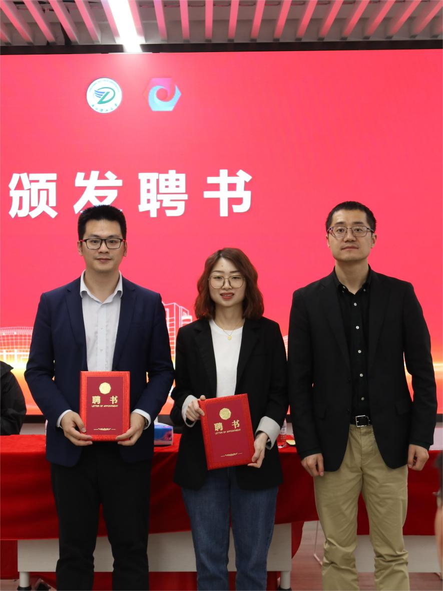为更有效开展大学生的职业生涯教育,学院增聘吴洁、姜洪斌分别担任“学生成长导师”和“校友导师”,由严博为两位颁发聘书。
