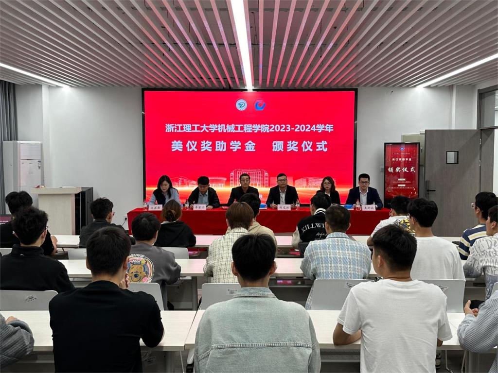 机械工程学院2023-2024学年美仪奖助学金颁奖仪式在15号楼102举行。杭州美仪自动化技术股份有限公司总裁助理兼采购总监、08级机械设计制造及其自动化专业校友陈定游,人力资源总监吴洁,市场总监、11级机械设计制造及其自动化专业校友姜洪斌,机械工程学院学术副院长严博,资助工作负责人李家乐出席仪式。仪式由学院校友工作负责人万苏影主持。