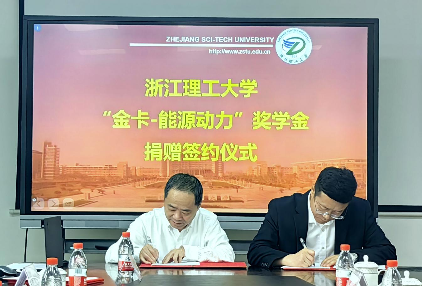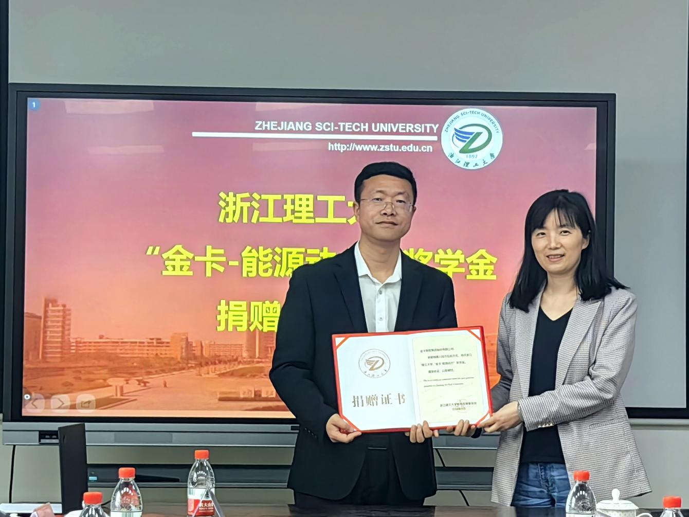 “金卡-能源动力”奖学金捐赠协议书》。签约仪式后,陈艳为金卡智能代表颁发捐赠证书。