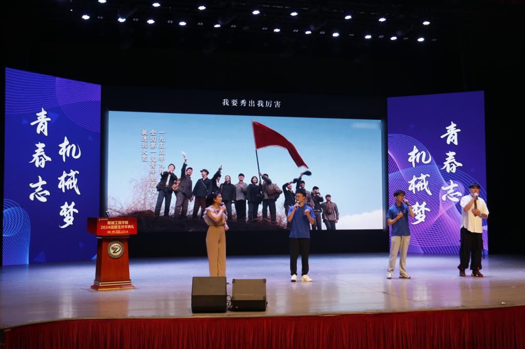 典礼最后,学院师生代表许雯晴、程序、余靖涛、周子涵带来歌曲串烧《麻雀》、《错位时空》、《强国一代有我在》,充分展现机械青年朝气蓬勃、奋发有为的精神面貌,抒发对伟大时代和美好生活的向往和热爱,为本次开学典礼画上了圆满的句号。