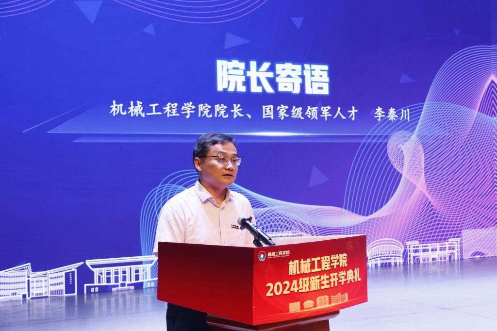 9月10日上午,机械工程学院2024级新生开学典礼在国际会展中心(大剧院)隆重举行。学院党委书记苏志俭,院长李秦川,副院长鲁玉军,学术副院长严博,院长助理陈刚,各系主任、三办主任、新生班主任、全体辅导员、教师代表出席典礼。典礼由学院党委副书记、纪委书记陆秋萍主持。