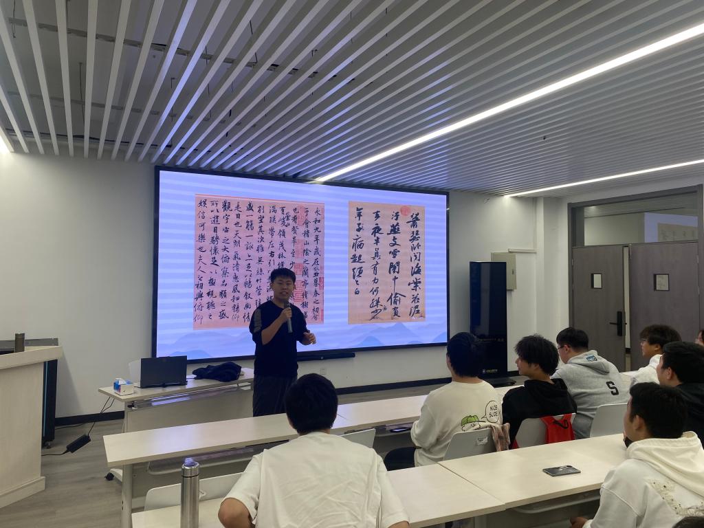 接下来一场别开生面的书法美育课堂“书 为 心 画”拉开帷幕,课上“美塘”书法美育工作室负责人李家乐老师从“书法鉴赏的三元素”、“笔墨纸砚的区别”、“颜真卿书法中的爱国情感”三个方面进行授课,通过一幅幅生动的书法经典作品展示,带领大家欣赏书法之美。本次课程提升了同学们的审美意识,同时也让同学们感受到了中华文化的博大精深。