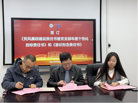 随后,扎实落实党风廉政建设和意识形态工作责任制,推进“党建+X”特色发展,促进党建与事业深度融合,学院党委与各基层党支部签订《党风廉政建设责任书暨党支部年度个性化目标责任书》和《意识形态责任书》。