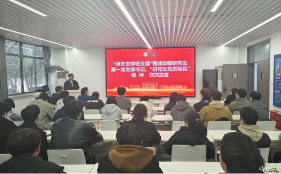 随后,第四批全省高校党建工作“研究生样板支部”智能农装研究生第一党支部书记、“研究生党员标兵”姚坤进行了交流发言。姚坤从创新组织生活形式、强化党员教育管理、特色志愿活动品牌创建、推动党建与科研融合发展等多个维度分享了支部的经验和做法,为各支部开拓思路、创新发展提供了宝贵的借鉴。